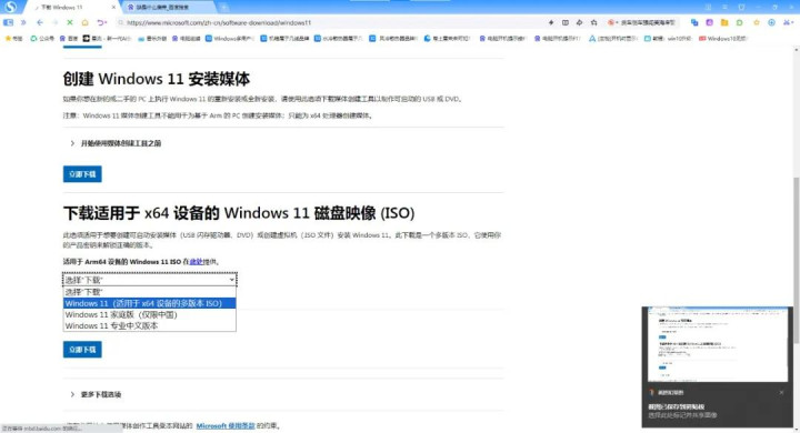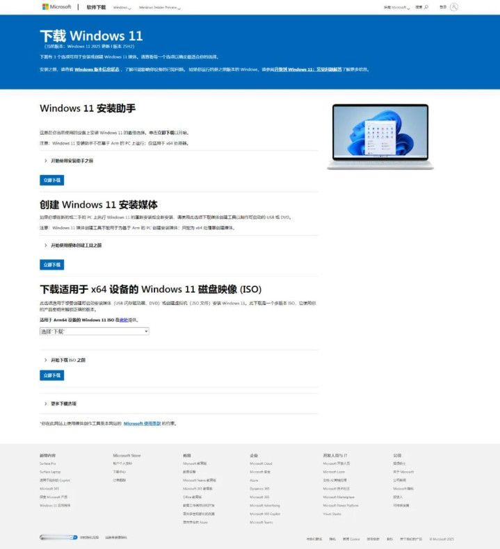 以上是微软下载Win11界面,里面就包含了这三种方法:
