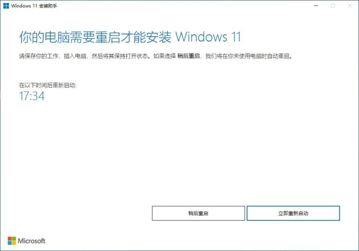安装完成之后,对电脑进行重启,就完成更新了。当然,如果不进行任何操作,30分钟之后,电脑会自己重启,完成更新: