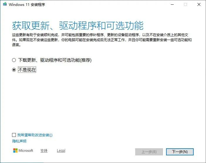 将选项改为“不是现在”,并点击下一页,此时会进入转圈加载过程,耐心等待完成,进入如下界面: